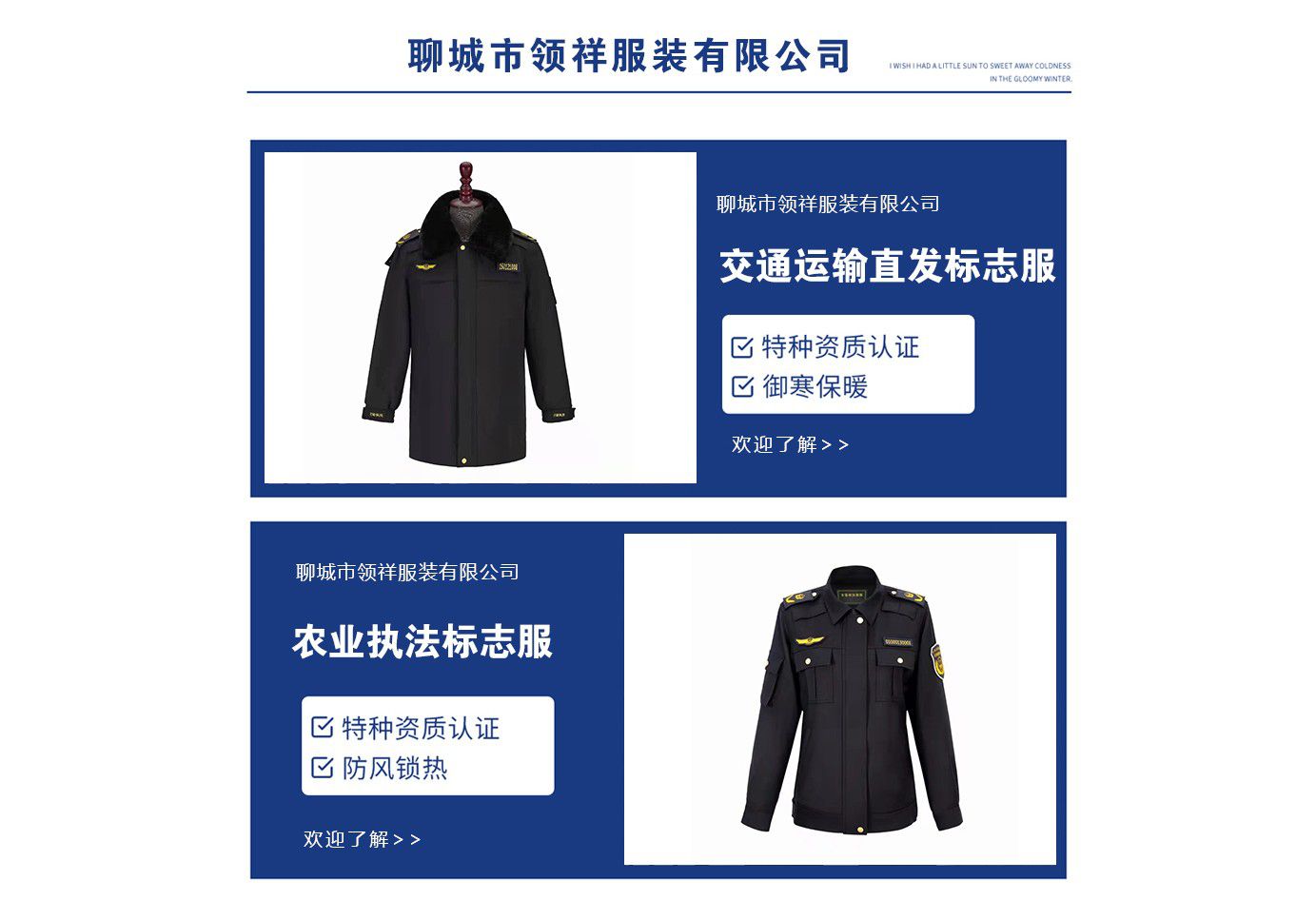 聊城市領祥服裝有限公司主主要生產六部門標志服,城管標志服,漁政標志服,標志服裝,動檢標志服裝,標志服裝廠等產品,款式新穎,做工精細,可根據用戶要求批量定做。公司成立以來,已為各行業數千家企業、集團承制了職業制服。 多年來,我公司本著“質優高效,守約重譽”的經營理念給廣大新老客戶提供質優價廉的產品和售后服務。憑借良好的信譽,雄厚的實力,優質的產品,低廉的價格愿與新老客戶真誠協作,業務遍布全國各地,是山東優秀的標志服裝廠,歡迎新老客戶參觀考察!  公司生產的職業服飾均以標準的質量,頂尖精湛的技術為基礎,以客戶的滿意為根本,全程采用電腦輔助設計制服,成衣、服飾配件(領帶,領結,紐扣,帽子,企業標志等)均可定織定染,普遍采用進口或合資優質輔料,尺碼按身高和體型劃分或量體定制。每一道工序,每一個生產環節精雕細琢,充分體現了以質量求生存,以信譽求發展的理念。并以準確的市場定位,先進的營銷理念,贏得廣大客戶的信賴支持!  公司宗旨:“團結、服務、創新”。公司方針:“專業創造輝煌,質量保證未來,用心換得人心”。熱誠歡迎業界同仁來公司洽談!...